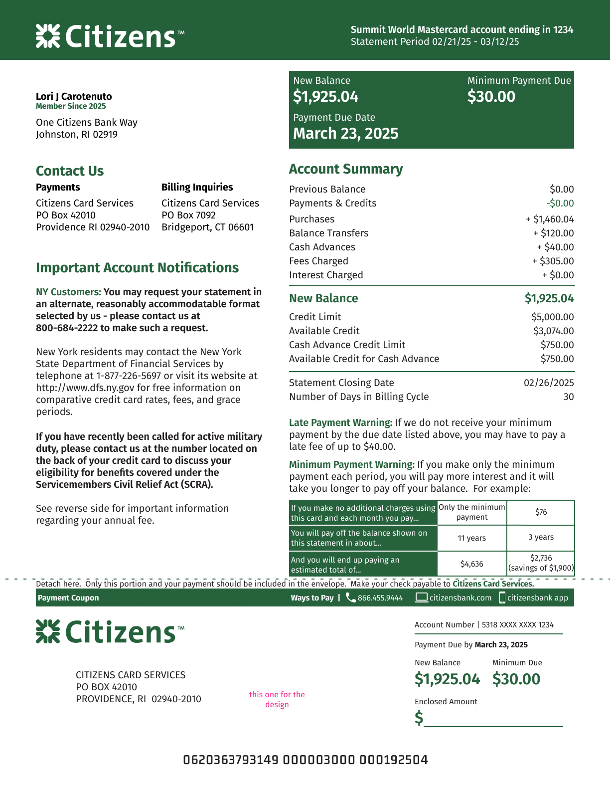Updating our Credit Card statements, aligned to our new brand direction, while enhancing the readability and accessibility for our customers.