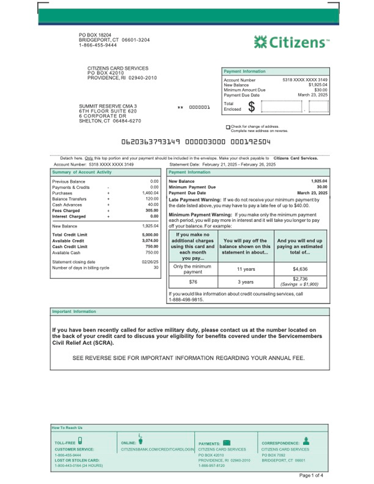 The new statement will be in the mail for our customers at the end of Q2 2026. The last month has been tweaking the mocks and CMYK colors to work best with our printer contractors, and clean up some of the overspray that has been occurring during test prints.